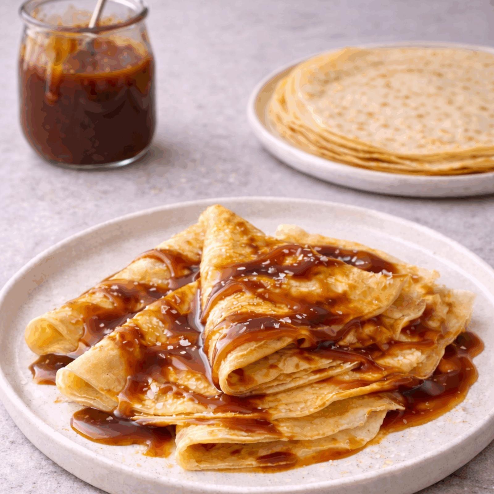 Crêpes sucrées à la chicorée garnie de caramel beurre sale à la fleur de sel et à la chicorée