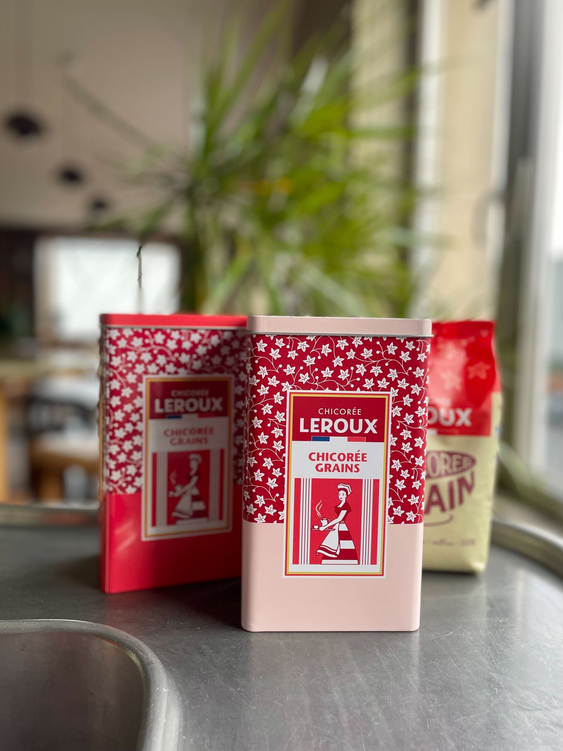 Une boîte métal Chicorée Leroux, bien plus qu’un simple rangement.Pensée pour garder précieusement votre chicorée en grains, elle se prête aussi à mille autres usages au quotidien. Solide, pratique et ornée du visuel emblématique, elle trouve naturellement sa place dans votre cuisine ou sur une étagère, comme un petit clin d’œil à une histoire authentique.La touche vintage et fonctionnelle parfaite qu’il manquait à votre déco.