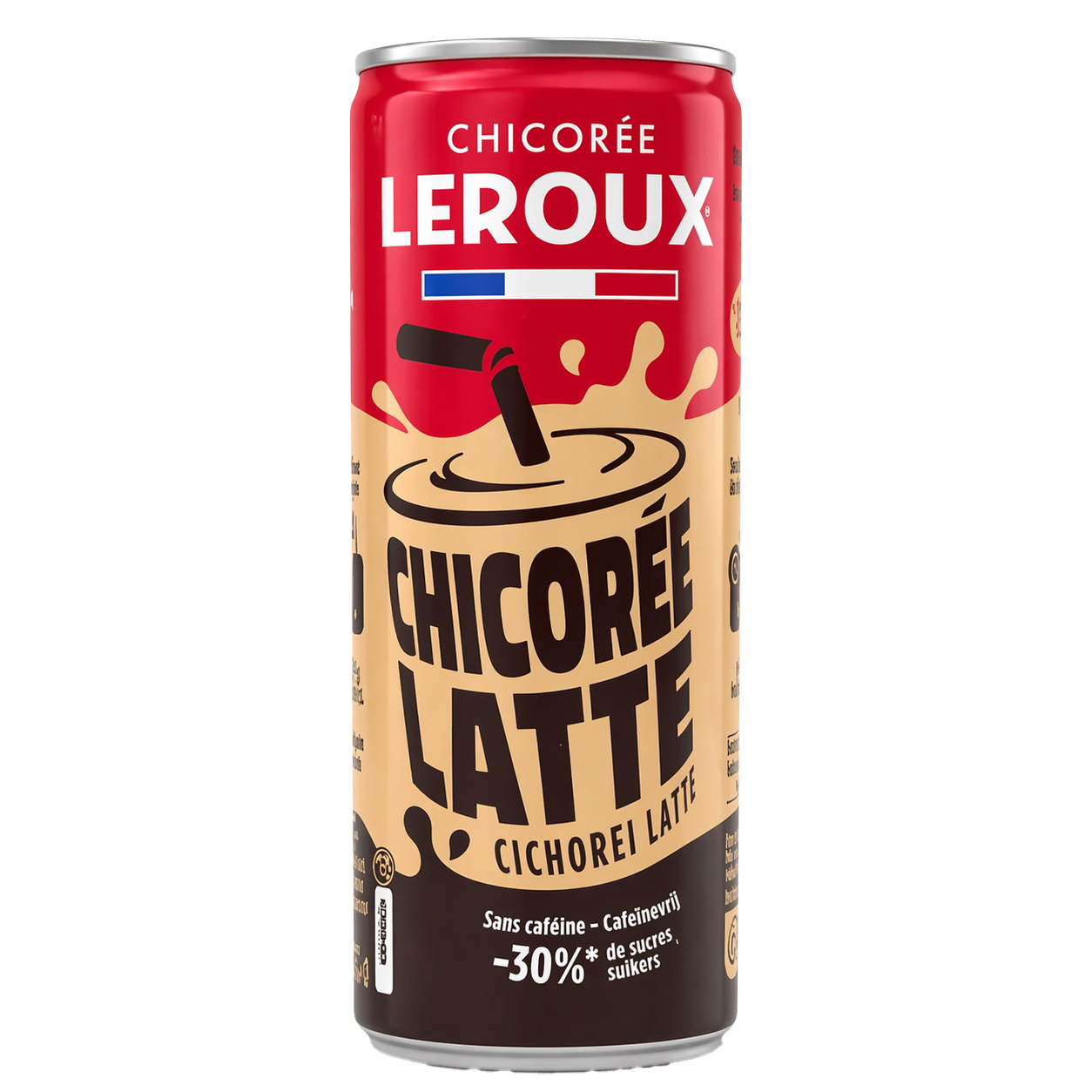 Lait origine France à 8 g MG/L (95%), sucre, chicorée soluble (1,9%), stabilisants : carbonate, acide de sodium et potassium, carraghénanes, phosphate disodique.