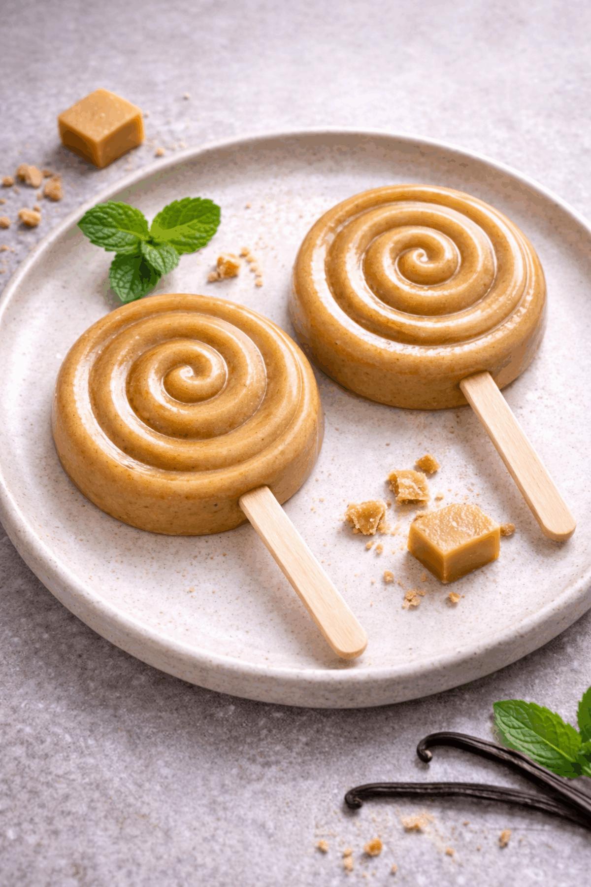 Répartir la crème dans l’empreinte d’un moule silicone à glace ou sucette (modèle sucettes Lolli Pop Silikomart) puis tapoter légèrement pour évacuer les éventuelles bulles d’air.