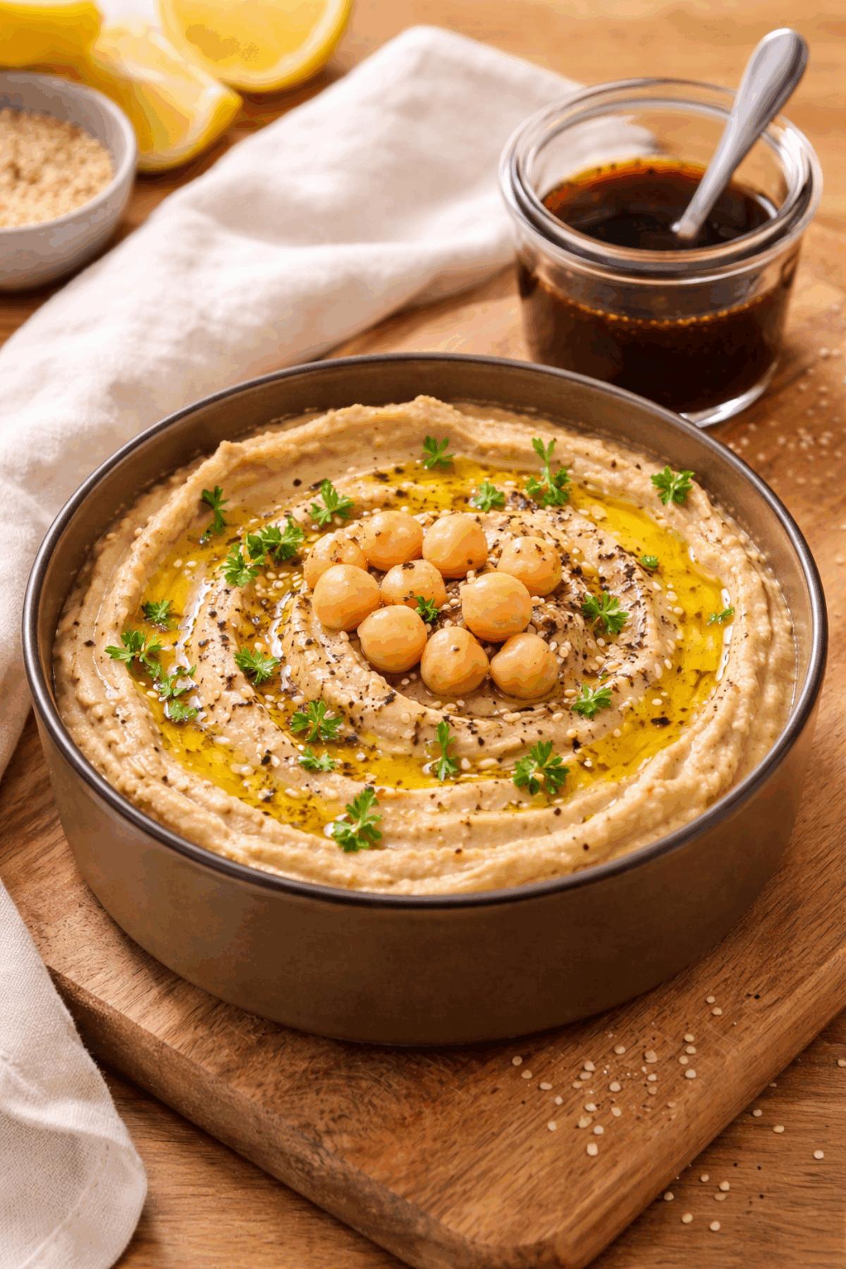 Verser le houmous dans un bol.
