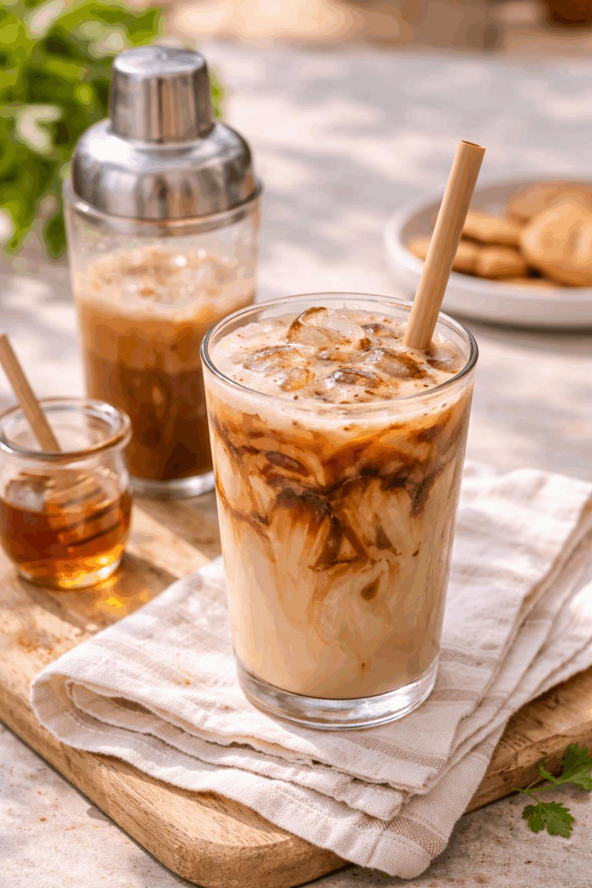Verser le lait ou la boisson végétale dans le shaker.