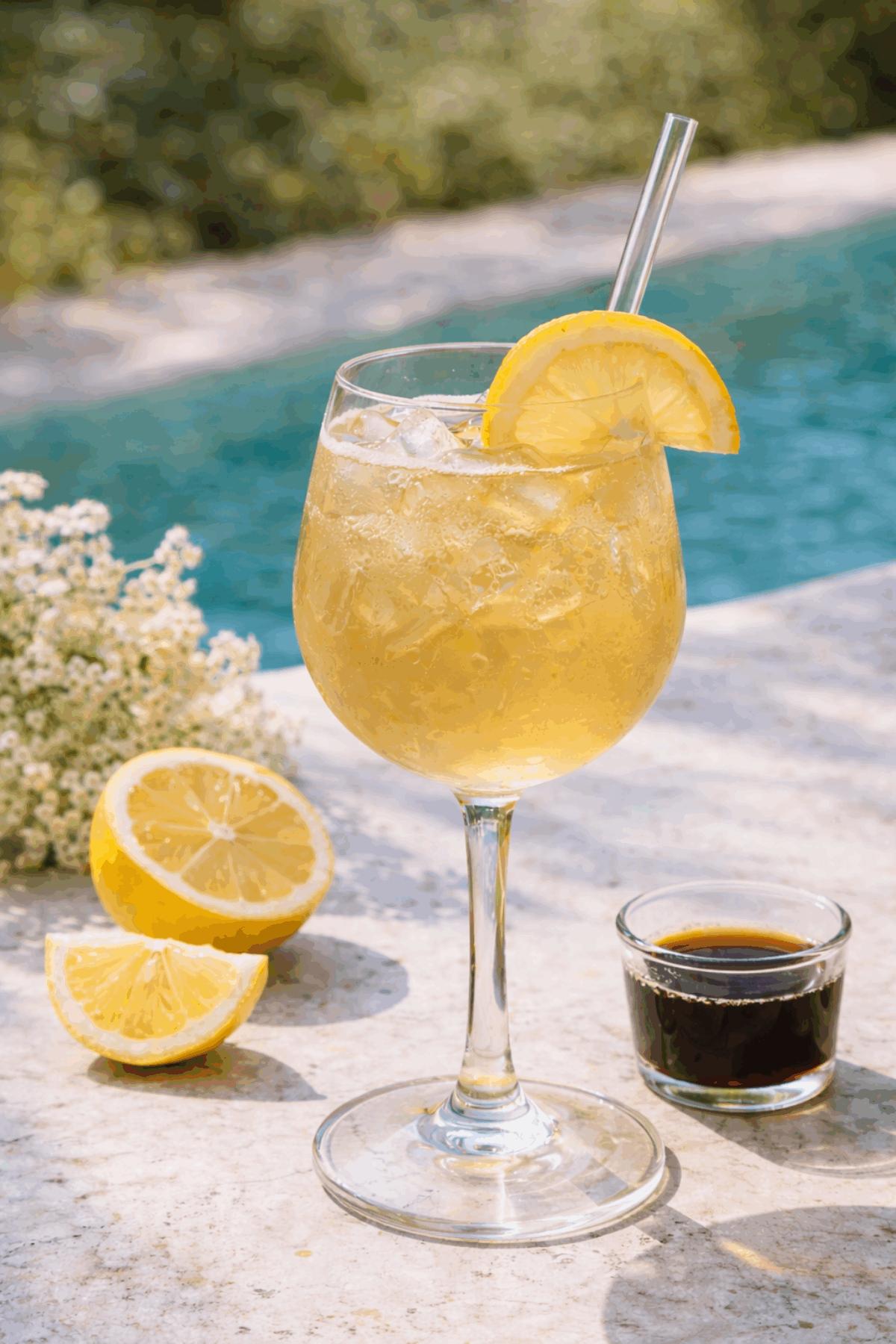 Verser l’eau pétillante fraîche par-dessus.