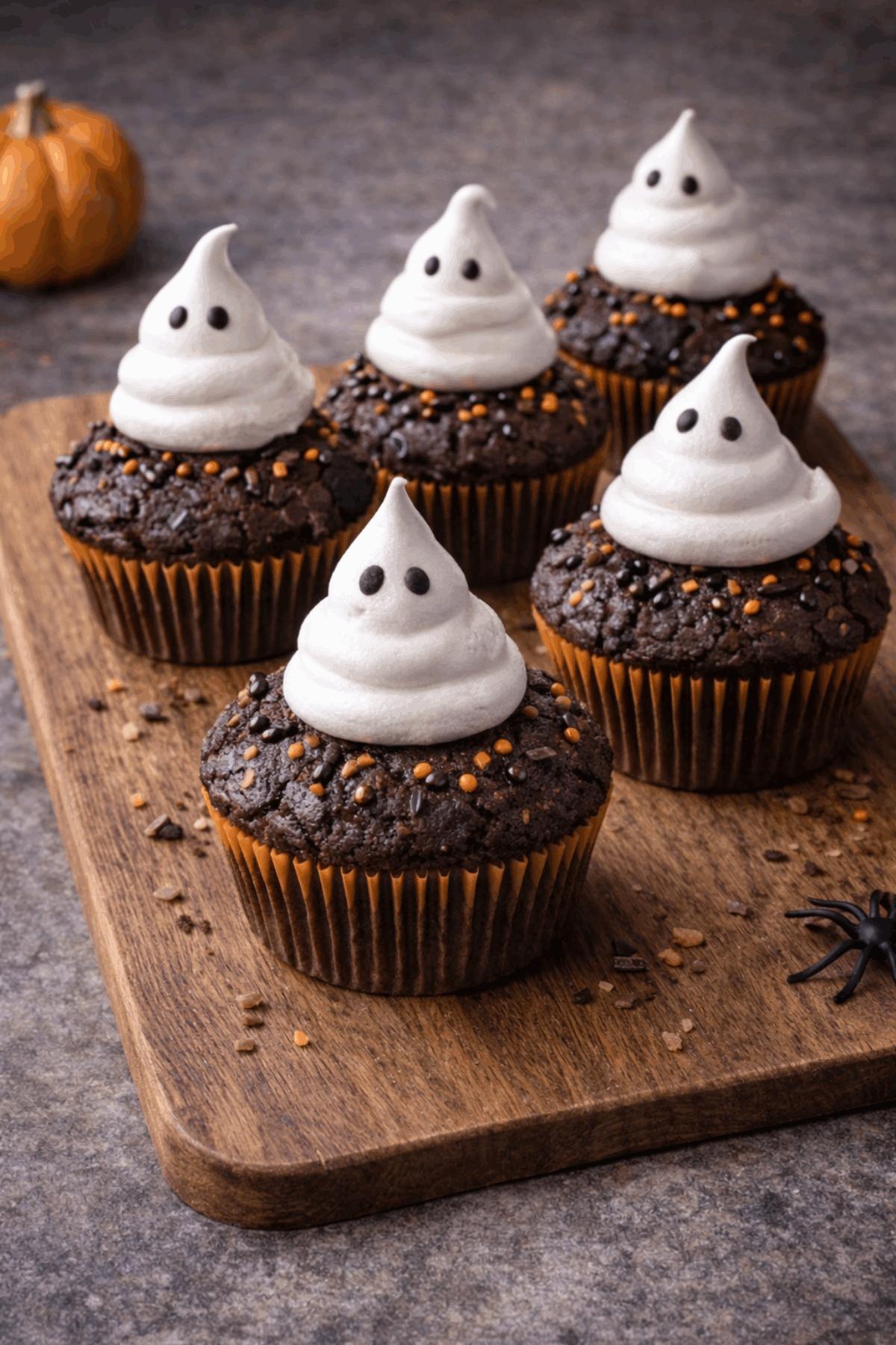 Enfournez pendant 1 heure (four préchauffé à 90°C). Faites refroidir les meringues. Dessinez les yeux des fantômes avec un feutre alimentaire noir.