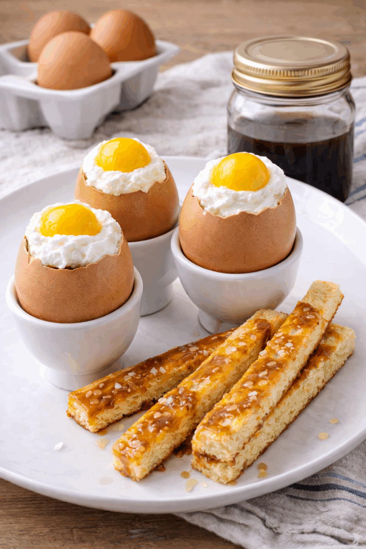Cassez 3 œufs en prenant soin de n’en casser qu’un petit chapeau.
