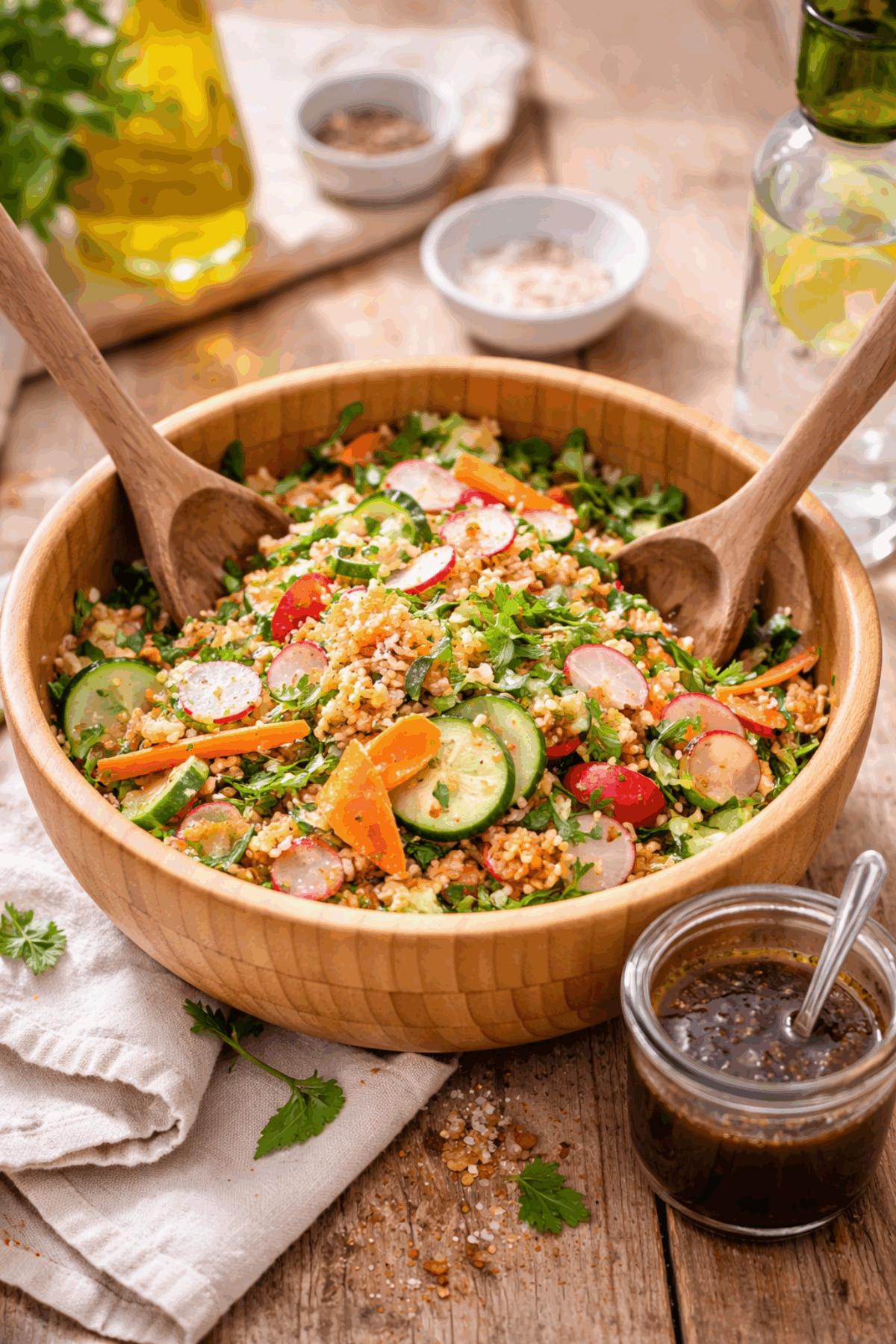 Couper les radis en fines rondelles, le concombre en demi-rondelles et la carotte en fins bâtonnets ou râpée.