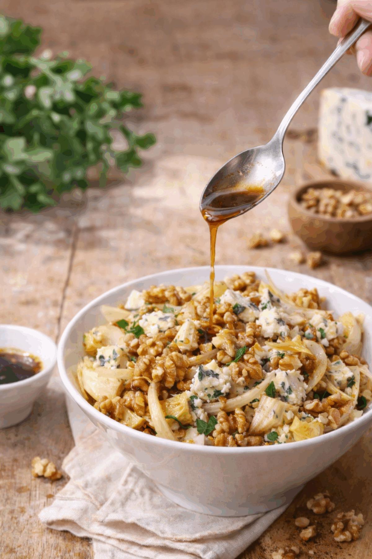 Ajouter le roquefort et les noix aux endives.